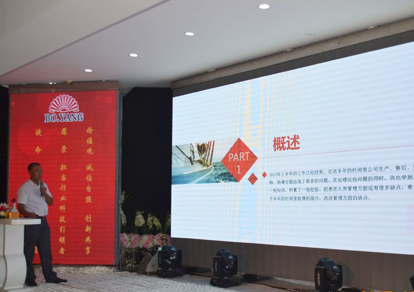 閆吉祥(xiáng)總(zǒng)經理首先對上半年的(de)銷售情況、員工激勵情況、組織架構(gòu)及團隊建設情況、企業文化發展情況作了回顧,對公司(sī)內部湧現出(chū)的員工進行了表彰,並對下半年的工作作全麵部署。
