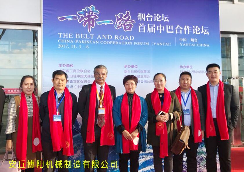 2017年11月4日,“一帶一路(lù)”煙台論壇———首屆中巴合作(zuò)論壇在煙台(tái)國(guó)際博覽中心世紀(jì)廳開幕,前外交部長、中國齊魯文化促進會會長李肇星(xīng),聯合國原副秘書長沙祖康、巴基斯坦(tǎn)駐中國(guó)大(dà)使館、駐巴基斯坦的山(shān)東企業代表、巴基(jī)斯坦的企業代表以及多家代表參加,安丘博陽機械製造有限公司孫紅金副總及孟憲惠經理應邀參加本次論壇。