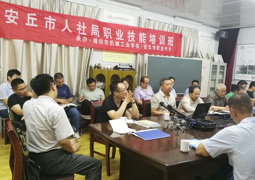 2018年5月29日,安丘博陽機械所(suǒ)有後勤人員齊聚公司會議室,接受由濰坊市機械工業學校承辦(bàn)的---安丘市人社局職業技能培訓項目。培訓時間