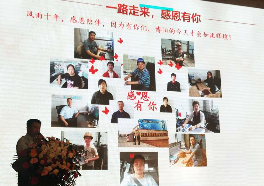 大會伊始,博陽機械總經理閆吉祥先生上台致辭,講(jiǎng)述了十年間博陽產品發展情況,從公司剛成立時的四五個人發(fā)展到現(xiàn)在的上(shàng)百人,從*開始(shǐ)的傳統設(shè)備到現(xiàn)在的(de)自動化設備,是多少(shǎo)個不眠之夜,多少個整改措施換來的成果(guǒ),其中的艱辛不言而喻(yù)。在十年的成長(zhǎng)中,安丘博陽(yáng)機械多次獲得省級、市級(jí)榮譽稱號和產品專利,積極(jí)支持扶(fú)貧項目,主動擔起社會(huì)責(zé)任,贏得(dé)社會(huì)廣泛關(guān)注和好(hǎo)評(píng)。