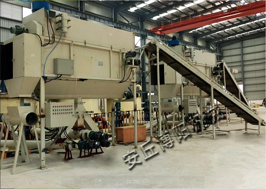由設備自動拆(chāi)垛(duǒ)並將包裝袋放到輸送(sòng)機上,經過包裝袋整理機的袋子進入破碎機後自動拆包,物料自(zì)動分離並經檢測落(luò)入下(xià)遊設備,或進行輸送到指定位置。廢袋自動分離後自動(dòng)壓縮、自動捆紮、自動打包(bāo)。拆包過程中產生的揚塵由過濾除塵器淨(jìng)化過濾達標後排出。