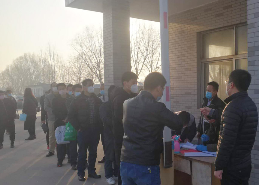 新春(chūn)伊始,萬物複(fù)蘇。根據安丘市新型guanzhuangbingdu感(gǎn)染的肺炎疫情防控工作指揮部《關於做好複工複(fù)產企(qǐ)業疫情(qíng)防控工作的意見》要求,安丘博陽機械於2020年2月10日(正月十七)正式開工生產。2月10日上午,安丘市(shì)市委常委(wěi)、紀委(wěi)書記、監委主任王峰貴、石堆鎮黨委書(shū)記王(wáng)德平一(yī)行對公司開工進行檢查指導,公(gōng)司閆吉祥總經理將博陽機械開工前防控物資的準備、工作環境的消毒、人員防控規範管理以及(jí)石堆鎮政府大力支持(chí)等方麵進行(háng)了匯報。王峰貴書記現場檢查後指(zhǐ)出,加強新型guanzhuangbingdu防控工作,是企業當前主要任務(wù),要確(què)保廣大職工(gōng)健康安全,同時也對博陽機械能夠快速複工表示肯定(dìng),企業複工也有助於企業快速穩定發展,從(cóng)而更好地為本地經濟增長做出貢(gòng)獻。開工當日,廣大員(yuán)工嚴格按照程序要求進行測(cè)溫、消毒、登記(jì),核(hé)查(chá)完畢確認符合要求(qiú)後陸(lù)續進(jìn)入生產及(jí)辦公(gōng)區域。班前公司各部門又本著(zhe)“預(yù)防為主,安全第(dì)*”的原則(zé)做了著重強調,確保職工上班(bān)期間的健(jiàn)康安全。