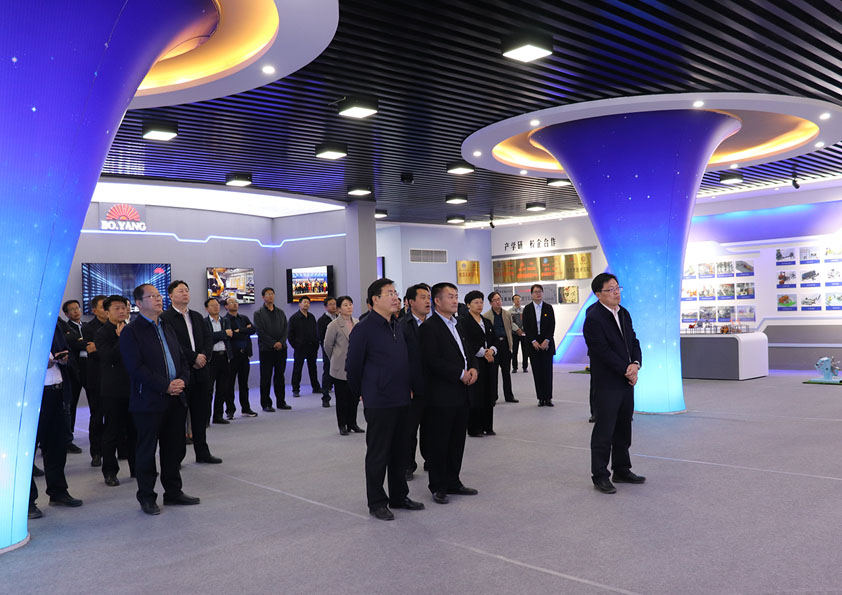 2020年11月15日(rì)安丘市市委書記李新閣(gé)帶領(lǐng)觀摩團來博陽機械指導工作,總經理閆吉祥向各位考察團領導(dǎo)介紹了公司近幾年的發展情況和取得的卓越成績,得到(dào)了領導的(de)肯定與讚揚,並對公司(sī)的發展提出了新的要求(qiú)和期望,希望公司進一步提升核心競爭力,抓住機遇,作出新的貢獻。