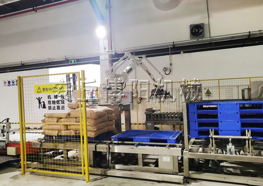 安丘博陽機械聚合物全自動碼垛機 自動碼垛機械手客戶現場