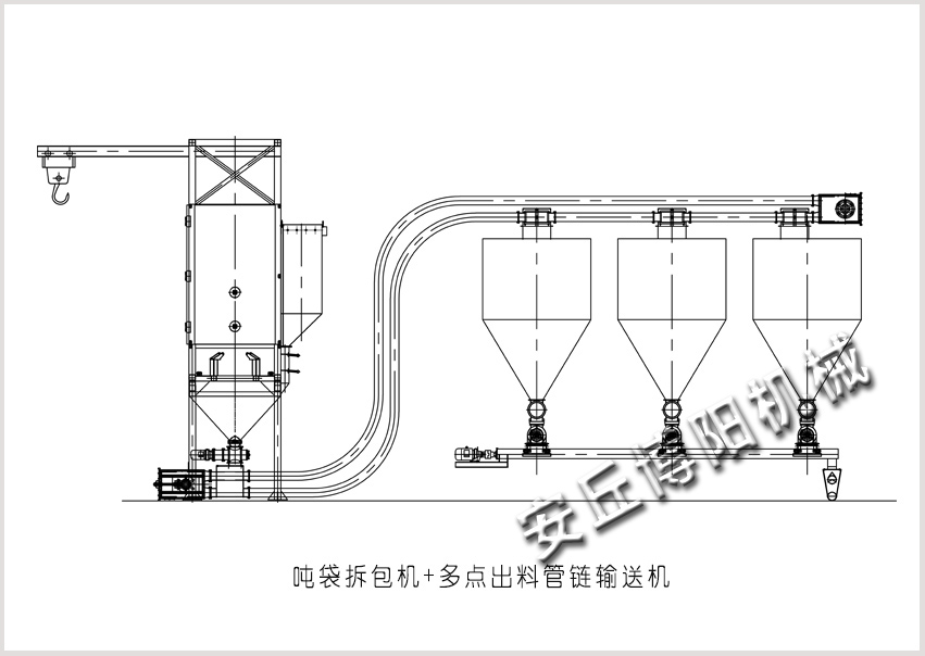 2. 粉塵控製效果好。本設備采(cǎi)用全(quán)封閉結構,實現同步(bù)收塵,在拆袋機工作期間,無粉塵外泄。工作現場環境指標達到國家勞動衛生標準要求。