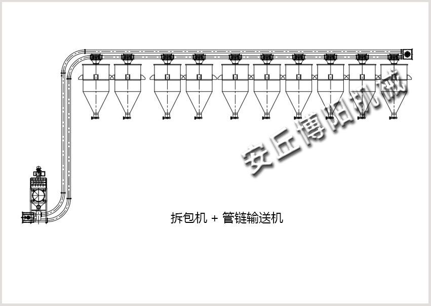 多(duō)出料口管鏈輸(shū)送機可(kě)作為噸袋拆包機和自動拆包機的配套(tào)設備。