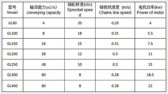 多出料口管鏈輸送機技術參數: