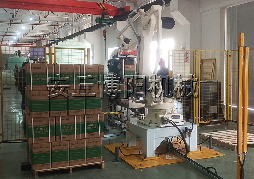 箱裝食(shí)品機械手自動(dòng)碼垛機可以應用於袋、盒、板(bǎn)條箱、瓶等包裝形式的(de)物料(liào)的(de)自動化碼垛,如食品、飲料(liào)、日化、香煙、酒類(lèi)、醫藥(yào)、肥料,飼料、糧食等行業紙箱包(bāo)裝、袋包裝和周(zhōu)轉筐包(bāo)裝的產品自動化碼垛。