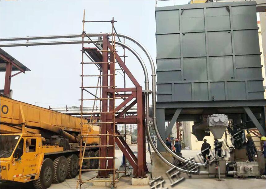 汙泥管鏈(liàn)式(shì)輸送(sòng)設備安裝現場